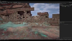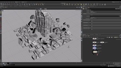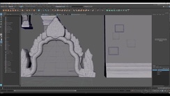 The workshop begins in Houdini, where Giovani begins building key architectural elements, including walls, floors, and pillars, and setting up a clean, modular blockout. From there, he moves into detailing the set pieces. He discusses how to build out your own Digital Asset Library for faster iteration and walks artists through how he creates his own rock formations – with very little sculpting – while still retaining control and shape variation.